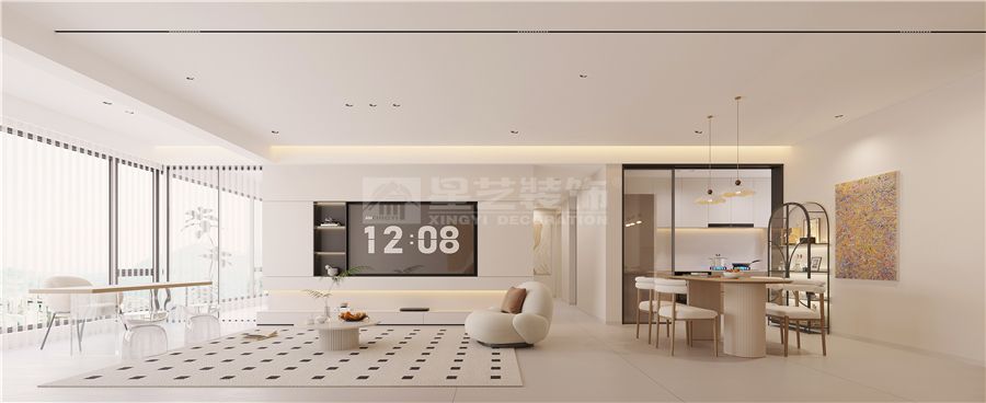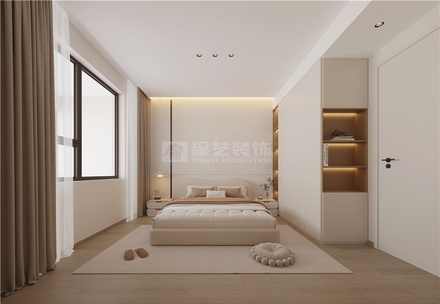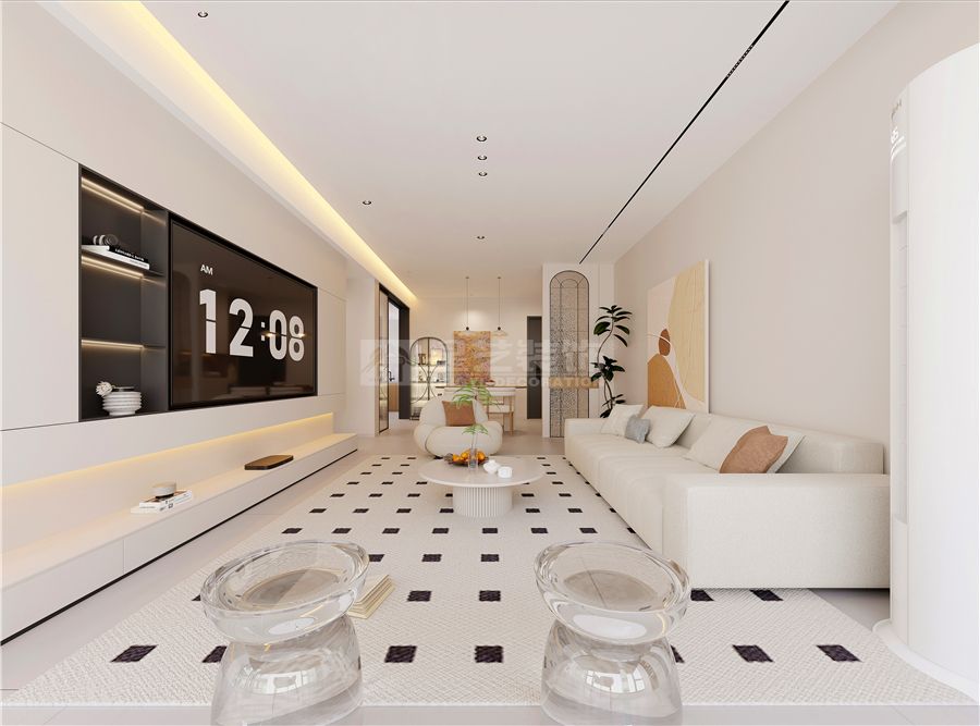 整体以米白、奶咖、象牙白等低饱和度色彩为主基调,这种色彩选择不仅能最大化地反射自然光,让空间显得更加通透开阔